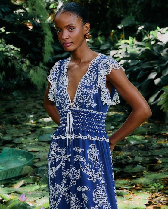 Romantic Richelieu Maxi Dress in Blue